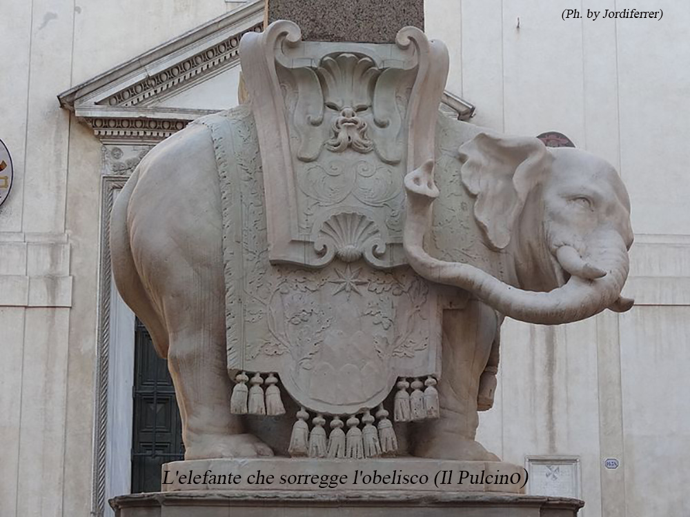Uno dei due, l’obelisco della Minerva, così è chiamato oggi, è collocato a Roma nella piazza della Minerva davanti alla Basilica di Santa Maria, è stato eretto sulla schiena di un elefante di marmo scolpito da Ercole Ferrata su disegno del Bernini nel 1667. L’intero complesso monumentale viene chiamato dal popolo il “Pulcin della Minerva” dove Pulcin sta ad indicare le ridotte dimensioni dell’elefante.