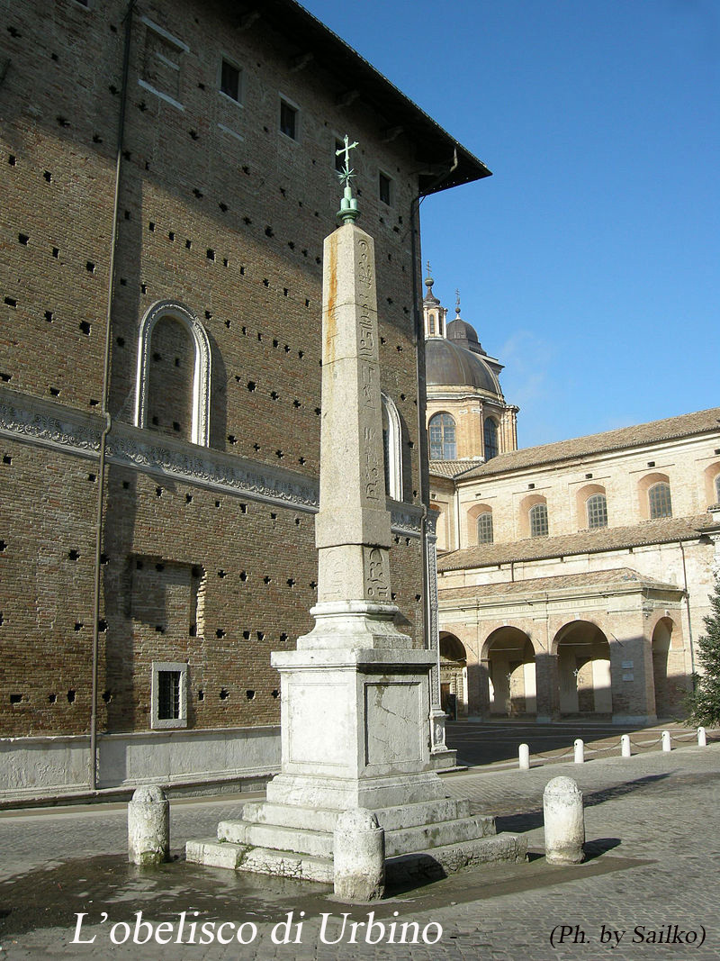 L’obelisco gemello, anch’esso restaurato venne donato alla città di Urbino, dove si trova tutt’ora in Piazza Rinascimento di fronte alla chiesa di San Domenico, per volere del cardinale Annibale Albani, come celebrazione del pontificato di Clemente XI (Giovanni Francesco Albani) in occasione del rinnovamento del tessuto urbano voluto dalla famiglia Albani.