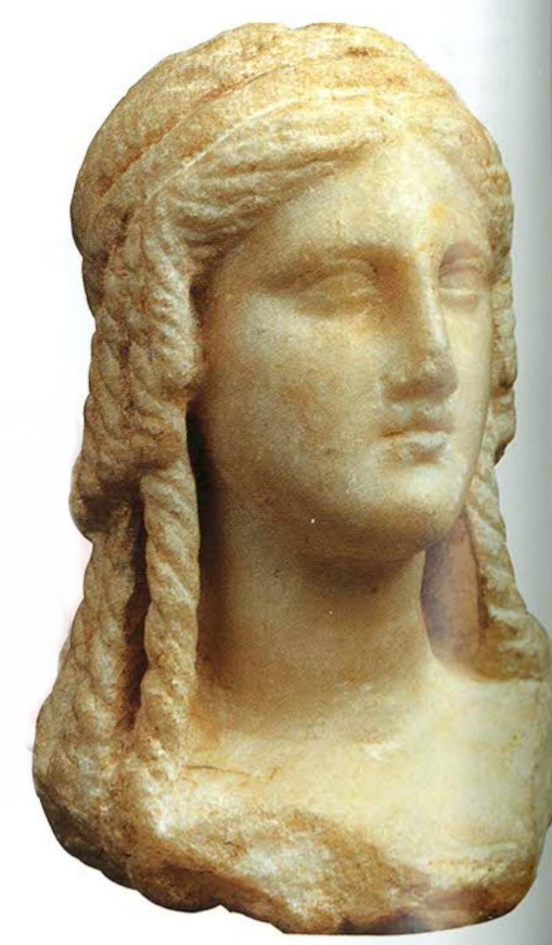 Raffigura un personaggio femminile dal mento pronunciato, con una raffinata acconciatura a boccoli e cinta da un diadema tipico delle Regine.