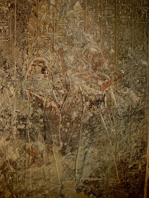 Un breve corridoio, sulle cui pareti (13) il defunto adora lo sciacallo Anubi e il defunto e la moglie recitano un inno ad Amon-Ra-Horakhti, immette nella camera funeraria (?) su una parete della quale (14) il defunto e la moglie recitano un inno ad Hathor e il defunto in offertorio ad Anubi e a un’altra divinità non identificabile[10].