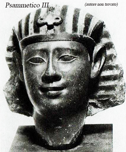 Non si sa che fine fece Psammetico III, secondo alcuni fu messo subito a morte, secondo altri venne catturato ma fu risparmiato e tradotto in catene a Susa. Cambise lo trattò in modo onorevole in un primo momento; a questo proposito si racconta un aneddoto su Psammetico e Cambise. Portato a Susa il sovrano della Persia lo volle umiliare con l’intento di metterlo alla prova. Lo fece condurre presso un pozzo nei sobborghi della città e sedere assieme ad altri prigionieri egiziani. Fece quindi sfilare davanti al faraone, vestite da schiave e costrette a recarsi ad attingere acqua, sua figlia e altre fanciulle di nobile famiglia. Mentre gli egiziani presenti si lamentano e piangono, Psammetico riesce a dominare il dolore, limitandosi a chinare la testa. Cambise fece allora una seconda prova, gli fece passare innanzi il figlio con altri duemila egiziani della stessa età, con una corda legata al collo e un morso in bocca. Venivano tratti a morte. Anche in questo caso, mentre gli egiziani presenti si lamentano e piangono, Psammetico rimane impassibile come aveva fatto quando passò sua figlia. Ad un tratto un uomo, piuttosto anziano, che un tempo era stato compagno di mensa del re, decaduto ora dalla fortuna e che nient’altro possedeva se non quanto possiede un mendico e chiedeva l’elemosina. Quando giunse accanto a Psammetico e lui lo vide, scoppiò in un pianto dirotto e, chiamando il vecchio compagno per nome, si batté con le mani sconsolato la testa. Cambise rimase stupito della sua condotta, per mezzo di un messo gli rivolse questa domanda: “O Psammetico, il tuo signore Cambise ti chiede perché mai al vedere la tua figliola oltraggiata e il tuo figlio che s’avviava alla morte non hai emesso né un grido né un gemito mentre hai concesso questo onore a un pezzente che con te, a quanto mi riferiscono, non ha legame alcuno”. Psammetico rispose: “O figlio di Ciro, le sventure della mia famiglia erano troppo gravi perché io le potessi compiangere; ma degna, bensì, di lacrime, era la disgrazia del mio compagno, che, caduto da una condizione di grande ricchezza, è precipitato nella miseria, ormai alle soglie della vecchiaia”. A queste parole piansero anche i persiani che assistevano e si dice che Cambise stesso fu preso da un senso di compassione. Ripeto quanto già detto a proposito di Erodoto: <<…….Presti fede ai racconti degli Egiziani chi ritiene credibili queste notizie……..>>.