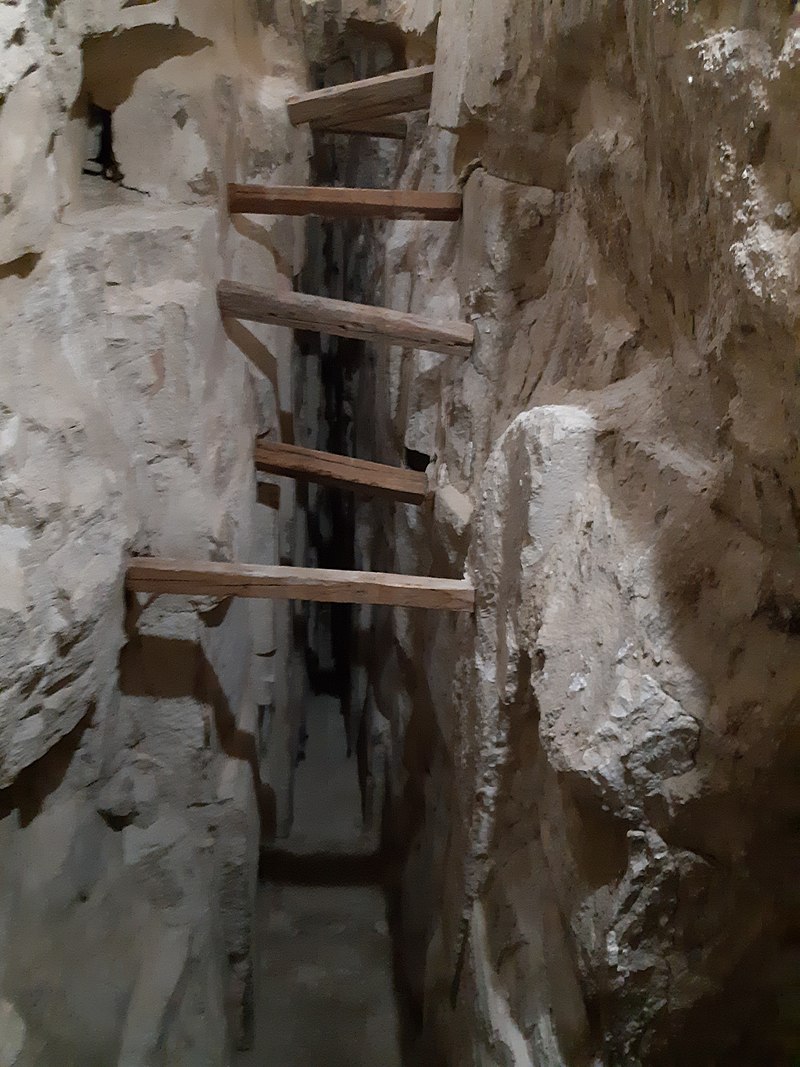 La visita alle camere funerarie è molto suggestiva ma sinceramente non alla portata di tutti, perché è faticosa (non dimentichiamo, oltre al numero esagerato di gradini, il caldo e il minimo ricambio d’aria), i cunicoli che permettono di raggiungerla sono molto bassi e un tratto è claustrofobico perché si restringe al punto che bisogna quasi procedere carponi: non avrei rinunciato per niente al mondo, ma quando mi sono trovata davanti a quel buco….avrei voluto pesare una ventina di chili in meno!