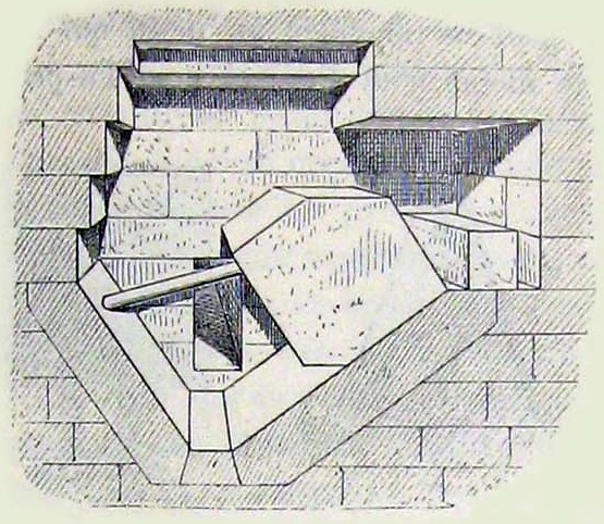 Questa prima operazione prevedeva lo scavo di un pozzo delle dimensioni di m. 7 x 7 e profondo 22,5; il “guscio” di pietra veniva aggiunto in seguito e costruito prevedendo i corridoi d’accesso, che avevano anche la funzione di consentire l’ascesa diretta del re defunto fino alle stelle circumpolari.
