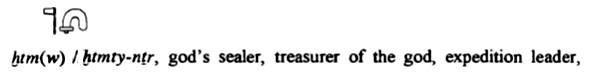 NOTA: A proposito del titolo xtmty-nTr (vedi immagine), mi sono soffermato sulla traduzione: “tesoriere del dio”. Però possono essere adottate altre definizioni. Quello in immagine è ciò che propone il dizionario: An Index of Ancient Egyptian Titles, Epithets and Phrases of the Old Kingdom – Volume I – by Dilwyn Jones.