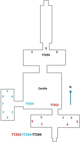[5] Le tre tombe sono riportate in unica planimetria e differenziate per colore; la TT254 è in azzurro.
