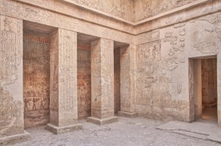 Un’anticamera, sulle cui pareti (18) sono riportati testi, immette in una sala ipostila a pilastri, su cui sono rappresentate divinità, tutte rivolte verso l’asse della sala stessa, con scarse rimanenze decorative: (19) resti di scene con portatori di offerte, di cui uno che conduce una mucca; su altra parete (20), sull’architrave di un ingresso a camera laterale, testi e portatori di offerte. Sul fondo della sala (21) una nicchia sulle cui pareti il defunto dinanzi a due divinità non identificabili (forse Iside e Nephtys), formule di offerta, scene solo abbozzate della dea dell’Oriente (?) a sinistra, e dell’Occidente a destra, dinanzi a una divinità mummiforme. Ai lati della nicchia, tori e vacche sacre. Un breve corridoio nell’angolo sud-est della sala immette in un appartamento funerario, la cui decorazione è molto danneggiata, in cui si aprono pozzi verticali non ancora esplorati