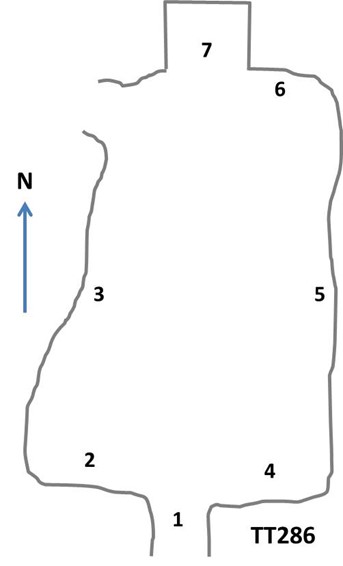 Benché non ultimata, TT286 presenta tuttavia pareti già decorate.