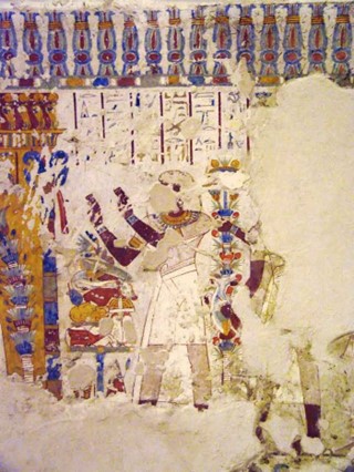 [8] Nell’Antico Egitto il blu era considerato il colore dell’introspezione e dell’infinito, era anche la tinta della pelle del dio Amon. Per ottenere una tinta blu, era necessario mescolare olio di lino e polvere di lapislazzulo; questo procedimento rendeva il blu il colore più costoso in assoluto