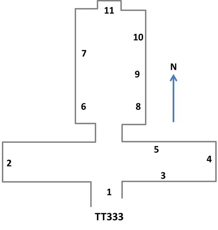 Planimetricamente TT333 è strutturata con forma a “T” rovesciata tipica delle sepolture del periodo: a una sala trasversale segue una sala perpendicolare alla precedente.