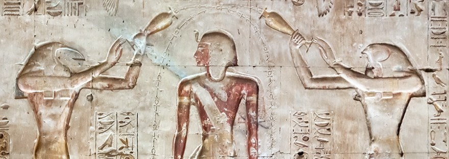 Nelle immagini: a sinistra, al centro e a destra, Sethy I, in tre raffigurazioni diverse, tutte nel suo tempio di Abido.