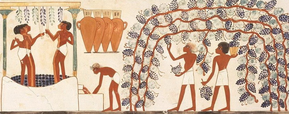 Nell’antico Egitto il vino era costoso ed alla portata solo delle classi agiate; esso veniva servito nei banchetti, utilizzato per i rituali religiosi e le offerte agli dei ed inserito nei corredi funerari.