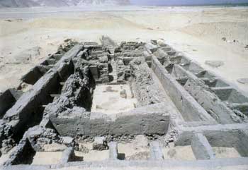 La fossa era coperta da travi e assi di legno e da una sovrastruttura con le pareti “a facciata di palazzo” in mattoni di argilla e paglia tritata essiccati al sole, comprendente otto stanze ed una camera funeraria scavata ancora più in profondità.