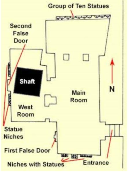 La sottostruttura (o cappella), il cui ingresso è impreziosito da larghi stipiti in pietra che riportano il nome di Meresankh, i suoi titoli, la data in cui il suo corpo fu portato al luogo dell’imbalsamazione e quella in cui avvenne la sepoltura (ben 272 giorni dopo la sua morte) è composta da tre ambienti scavati due metri sotto il livello del suolo ed orientati in direzione nord- sud.