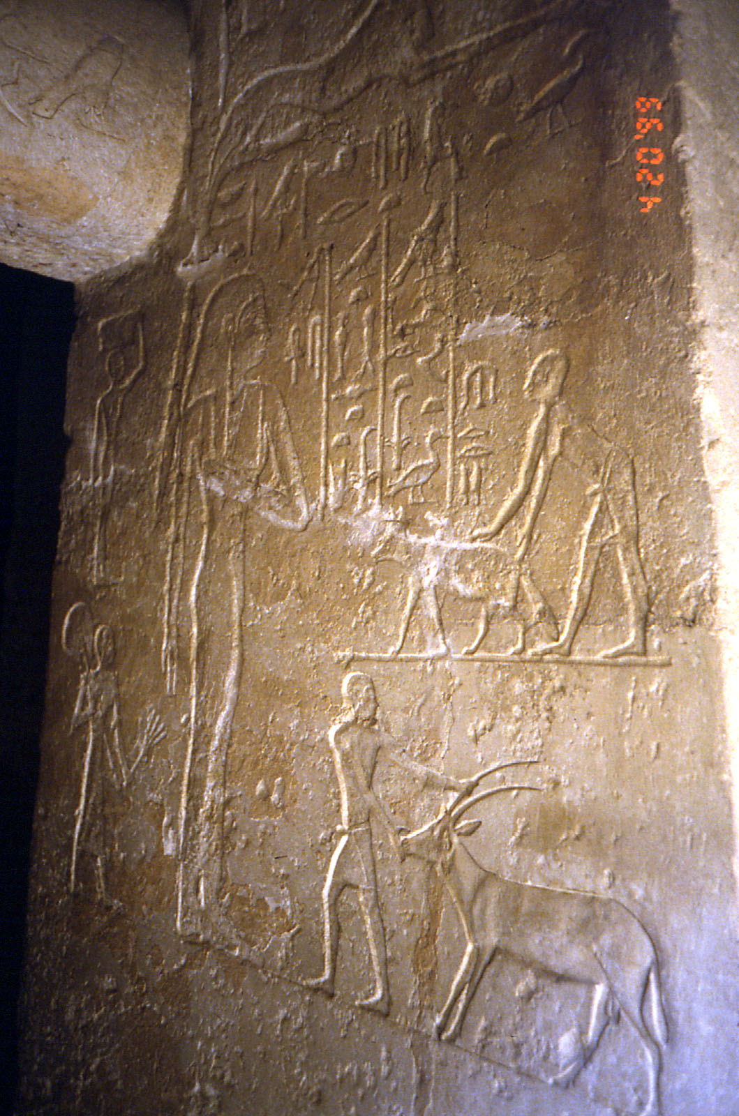 Nel terzo registro si vede una processione di gru, oche, buoi ed un vitello guidati dai propri custodi e destinati ad essere offerti alla defunta.