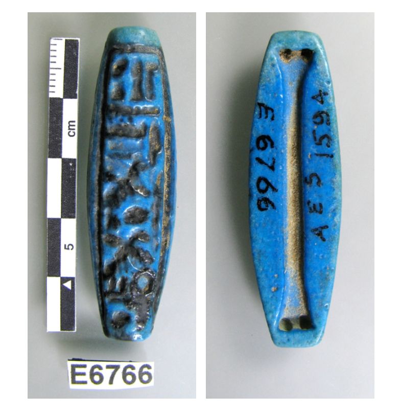 Il reperto è lungo 5,21 cm, largo 1,5 cm e profondo 0,6 cm. Fu realizzato tra il 1075 e il 945 a.C. ed appartiene alla XXI dinastia.