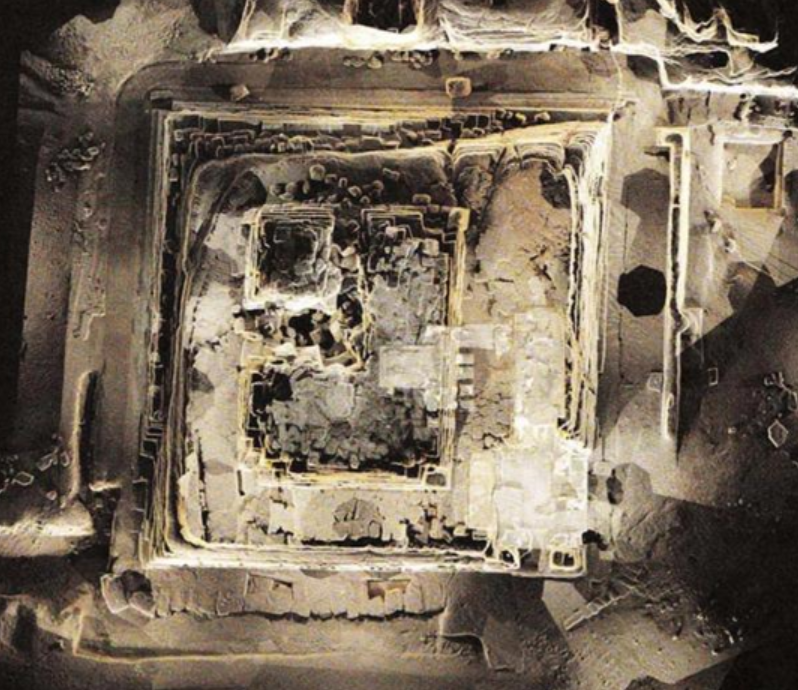 La mastaba vista dall’alto: immagine di una nuvola di punti ortofotografica (rilievo 3D) della tomba (Yukinori Kawae/ Ancient Egypt Research Associates