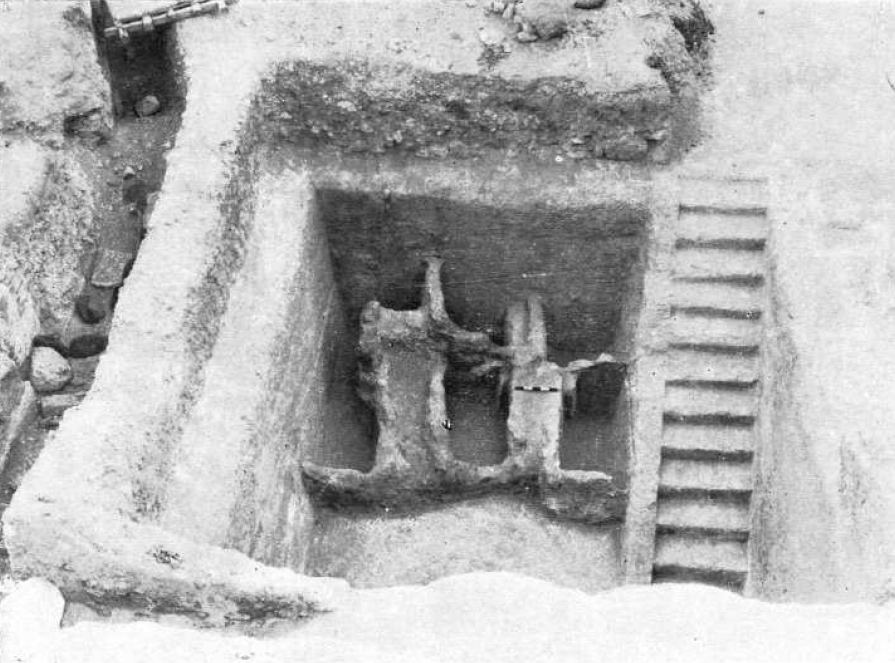 La vasca posta nei pressi dell’angolo nord est della mastaba. Sul fondo si notano dei pozzi utilizzati come sepolture intrusive molti anni dopo la morte della regina.