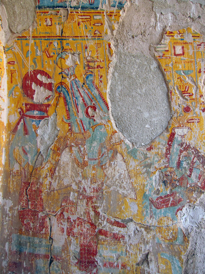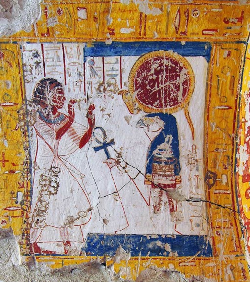 «Ra-Horakhti, il grande dio, maestro del cielo»Uno dei pochi dipinti interamente preservati della TT212, muro sud-est della nicchia