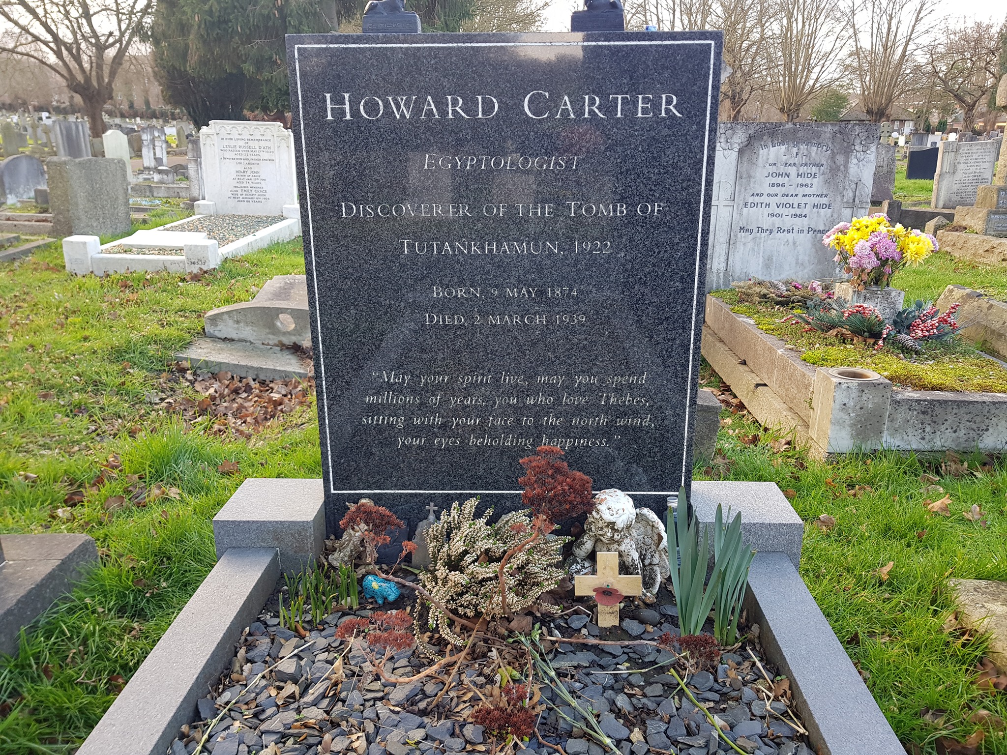 Carter doveva essere particolarmente legato a questo reperto. Dispose infatti che sulla sua lapide nel cimitero di Putney Vale a Londra fosse scolpita proprio questa frase. Parole che nonostante i 3300 anni trascorsi conservano intatte la loro eterna bellezza.