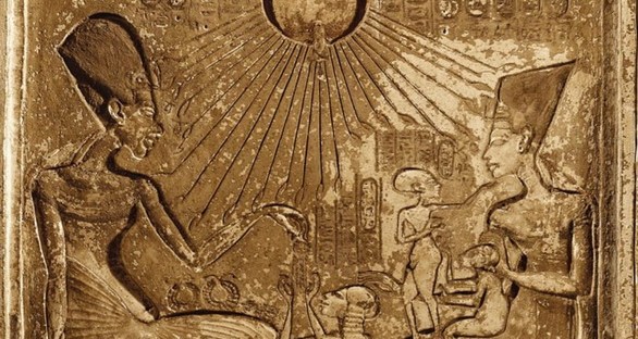 Akhenaton è sempre accompagnato da Nefertiti, e a volte anche dalle figlie. Sopra di loro, Aton splende nel cielo: la famiglia reale diventa perciò un’icona da adorare. Se ci si concentra sui tratti del volto della regina, nelle prime opere ci pare difficile riconoscere la stessa donna del famoso busto di Berlino. Nell’arte egizia la ricerca della bellezza è solo parzialmente relazionata alla realtà, è sempre idealizzata e serve a trasmettere un messaggio concreto. Akhenaton e Nefertiti introdussero il culto di un dio unico e usarono l’arte per diffondere il messaggio. Nei primi tempi della loro riforma religiosa, l’arte comportò una rottura: bisognava eliminare i canoni estetici precedenti perché si trattava di un nuovo inizio. Fonte: Storica-National Geographic