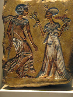 La regina Nefertiti, condivise la politica religiosa del marito come testimoniano i testi e le raffigurazioni.
