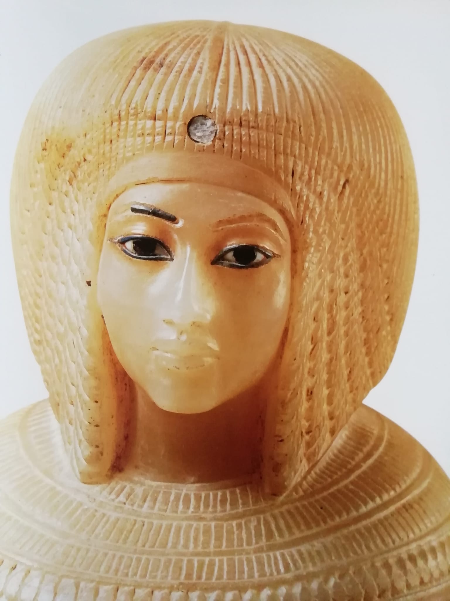 Questo coperchio di vaso canopo è un ritratto inequivocabilmente femminile.