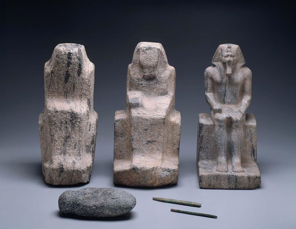 Nell’ambito della statuaria dell’Antico Regno queste tre statuette in gneiss sono molto interessanti per capire le modalità operative seguite dagli scultori dell’epoca.