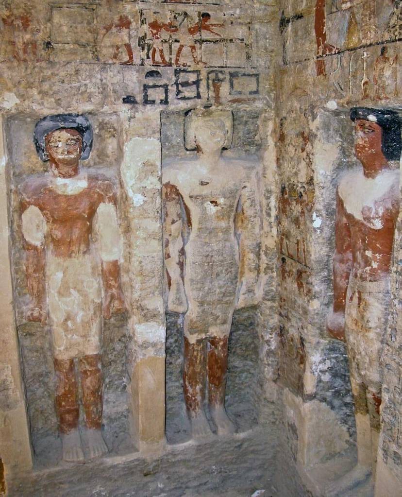 Esse sono state rinvenute nel 1908 a Giza, nel Tempio a Valle di Micerino, da una spedizione dell’Università di Harvard – MFA di Boston e sono ora custodite al Museo delle Belle Arti di Boston (accession numbers 11730 – 11731 – 11.732) al quale furono assegnate dal Governo Egiziano.