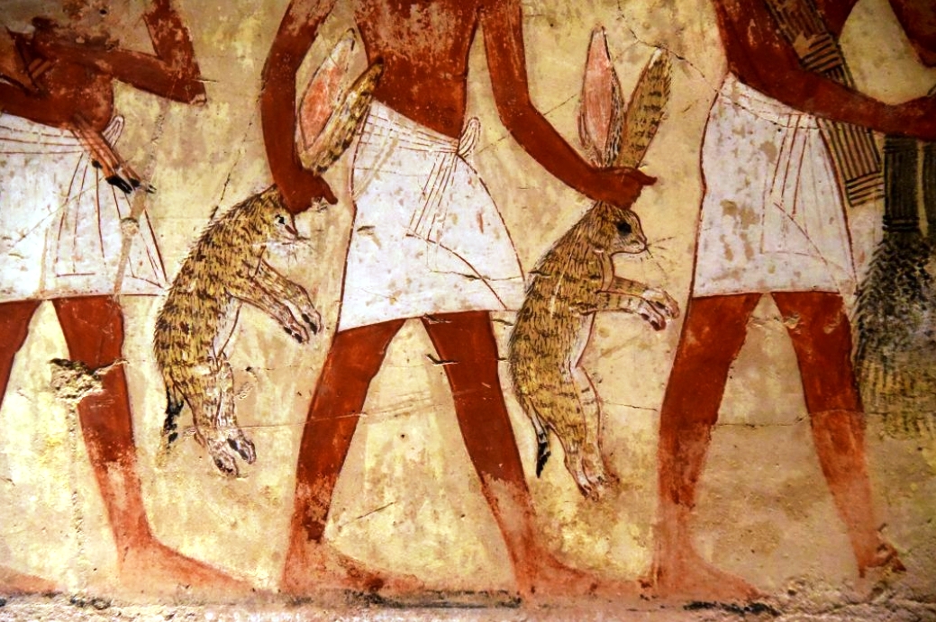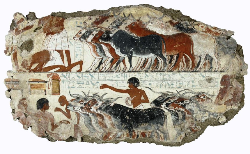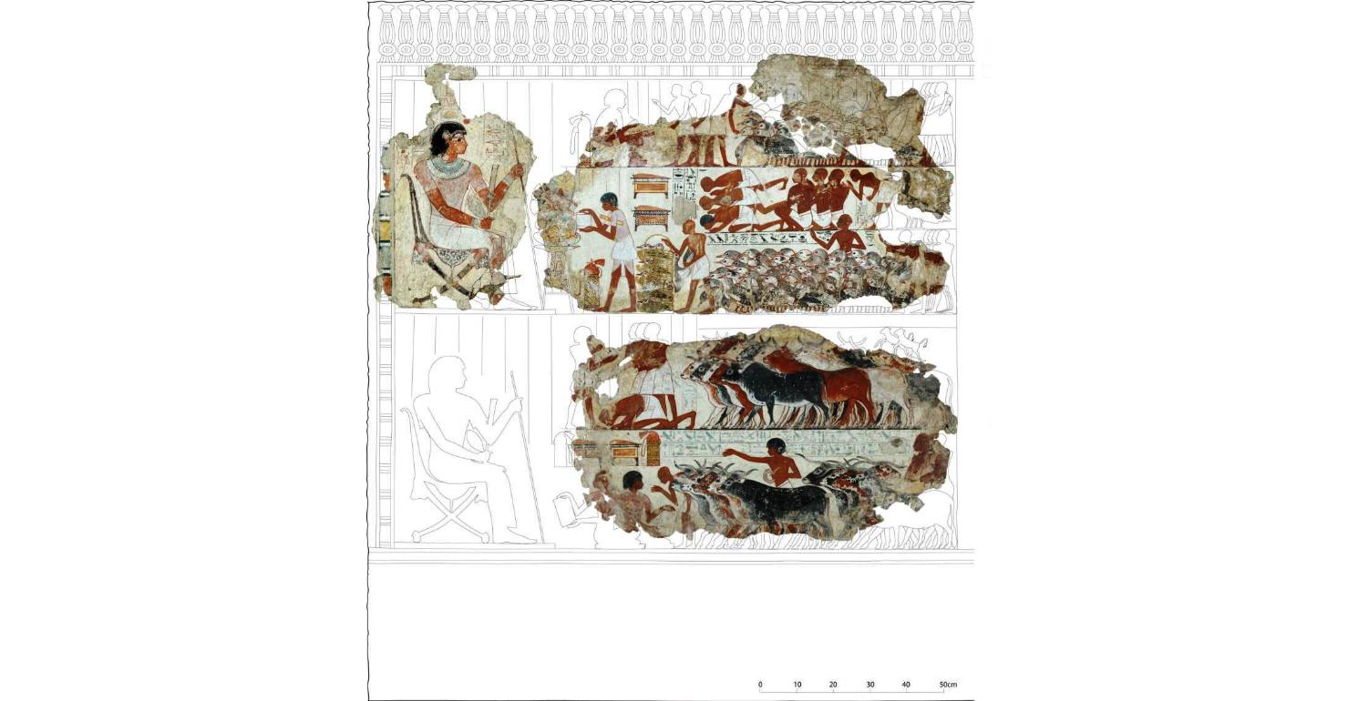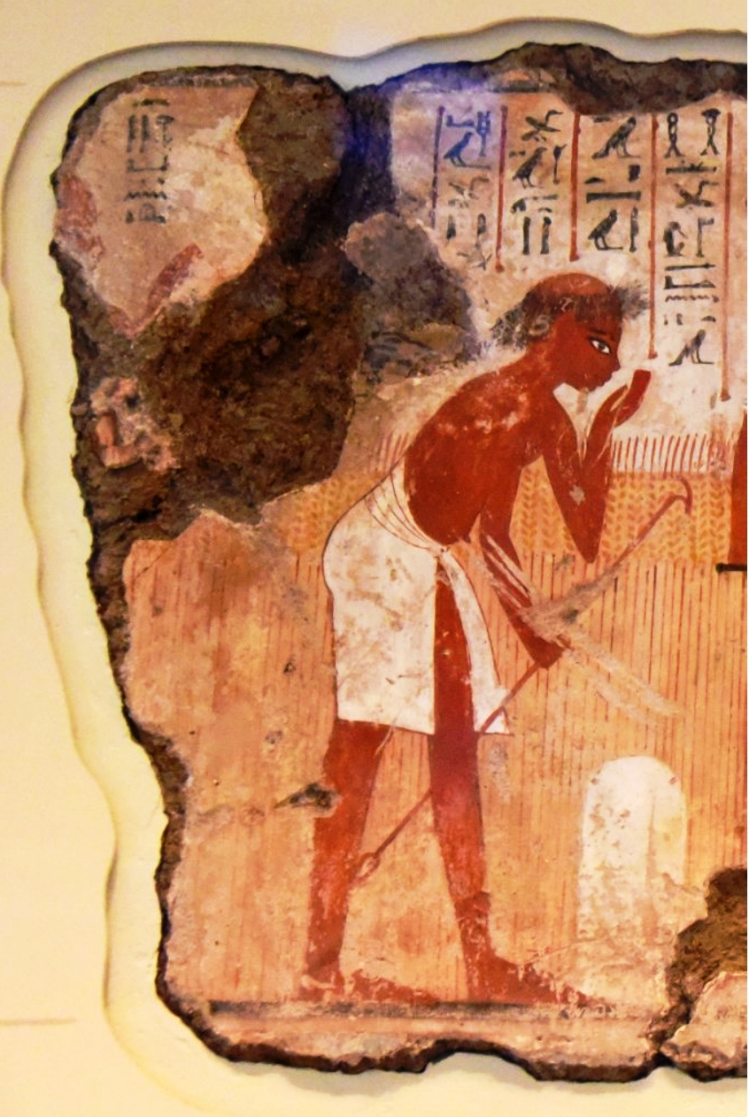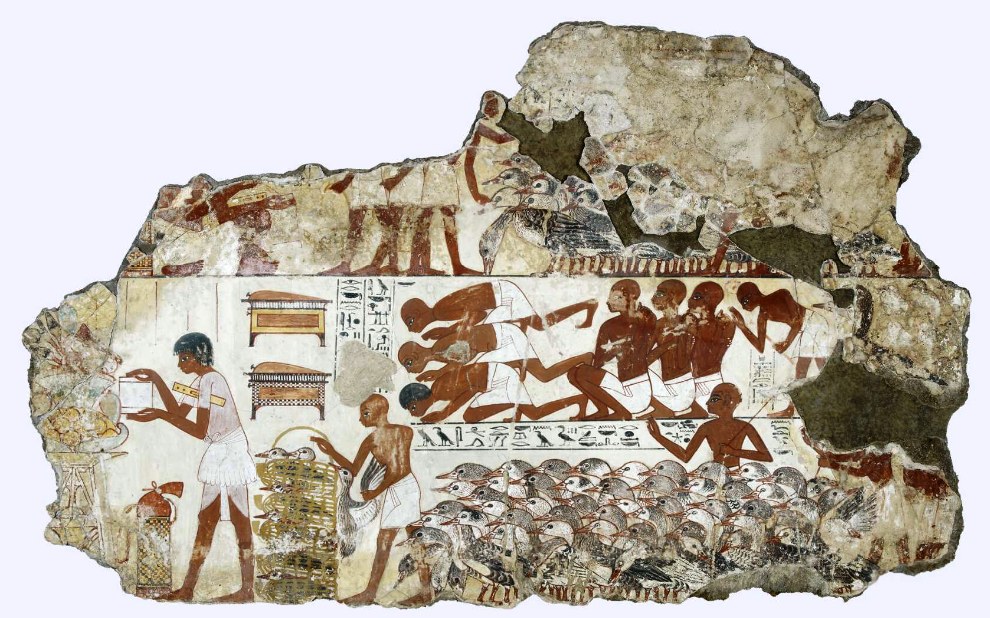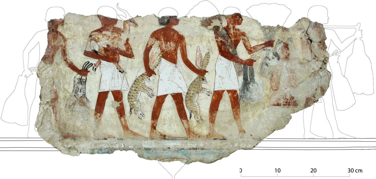 Frammento di bassorilievo tombale in calcare dipinto, dalla tomba di Djehutyhotep, nomarca del Nomo della Lepre a Deir el-Bersha, scavata da Percy Newberry: XII din., regno di Sesostri III.