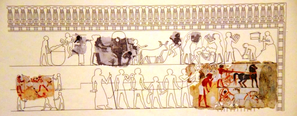 Questi modellini raffiguranti gruppi di persone che svolgevano attività quotidiane venivano posti nelle tombe durante il Medio Regno, e devono considerarsi un’evoluzione delle statue serventi: gli Egizi ritenevano che i personaggi rappresentati avrebbero continuato anche nell’Aldilà a lavorare per il defunto.
