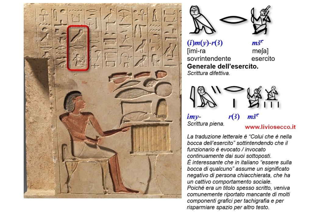 Sopra di esso la dea Wadjet in forma di cobra e l’occhio udjat, simbolo di prosperità, del potere regale e di buona salute, che la rappresenta ed un fiore di ninfea, emblema araldico dell’Alto Egitto.