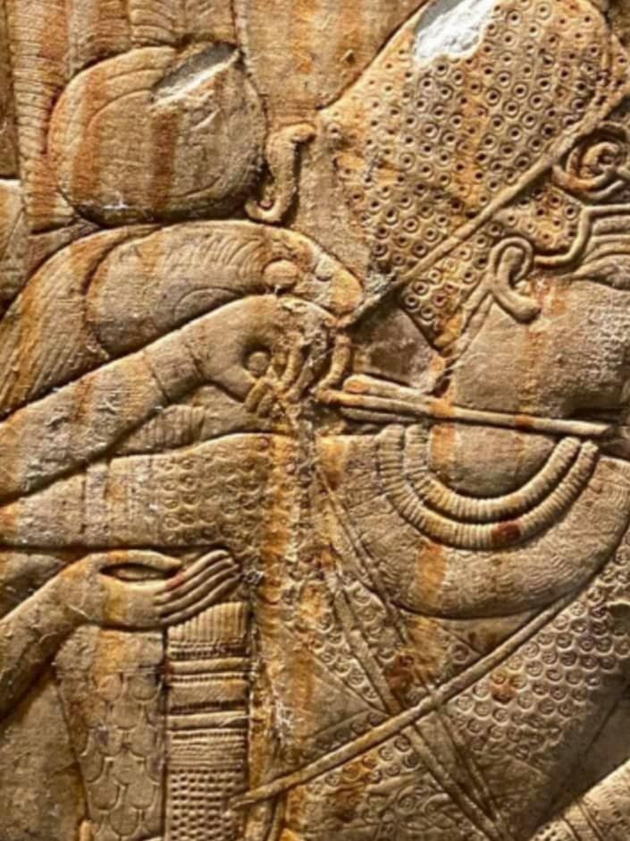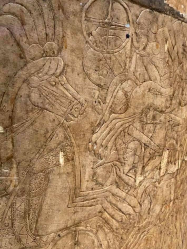 Qui si vede una sfinge, forse il sovrano. I sovrani venivano frequentemente rappresentati con le sembianze di sfingi che calpestano i nemici