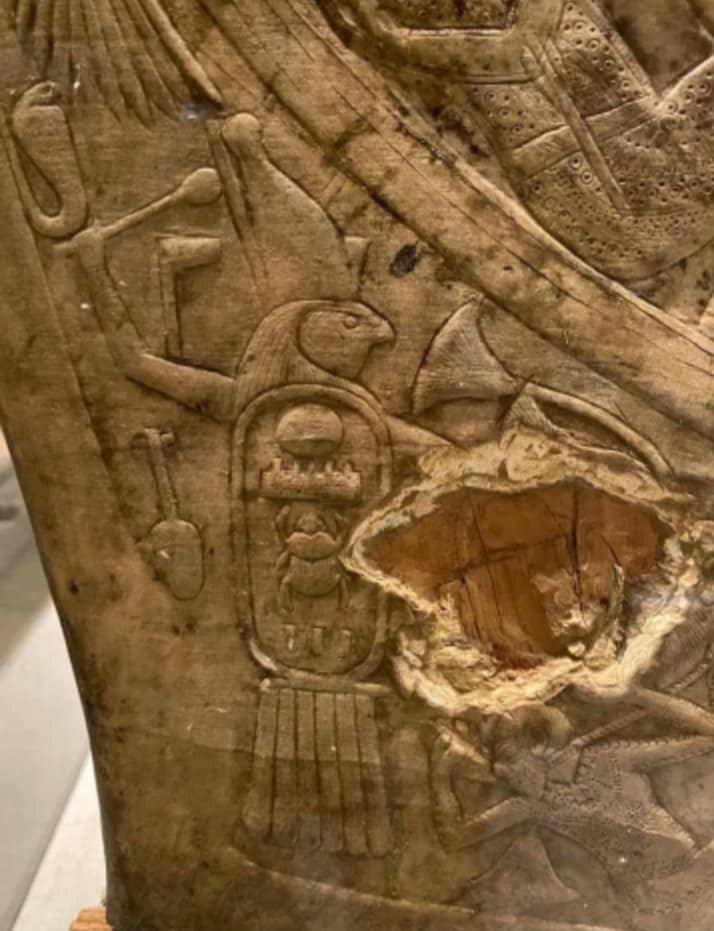 Ancora il cartiglio del sovrano sopra Montu, dio-falco dell Guerra
