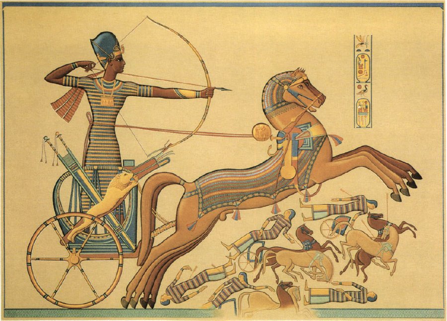Ancor più incredibile è che di quel carro conosciamo anche il nome dei cavalli che, bava alla bocca e groppa grondante sudore, lo fanno quasi volare tra gli oltre duemilacinquecento carri nemici[1]: “Vittoria in Tebe”, l’uno, “Mut è soddisfatta”, l’altro.