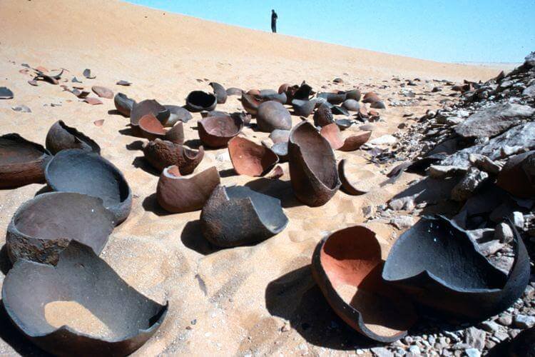 Lungo questo tragitto “alternativo” hanno rinvenuto degli alamat (cumuli di pietre per orientarsi), sorgenti oggi prosciugate ed un deposito di centinaia di anfore per l’acqua datate a 2500 anni fa e sepolte nella sabbia, che avrebbero reso possibile una marcia nel deserto; inoltre hanno portato alla luce nei pressi di una caverna abbastanza vicino a Siwa numerose ossa umane e piccoli oggetti di epoca achemenide che potrebbero riferirsi all’Armata perduta (punte di freccia, un pugnale, parte dei finimenti di un cavallo, un orecchino e le perle di una collana).