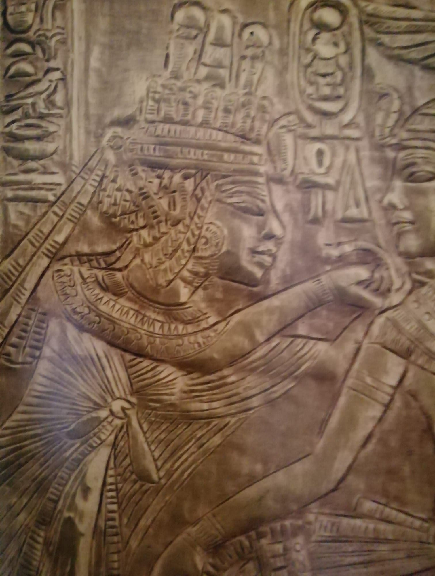 Tutankhamon e Ankhesenamon sullo schienale del trono. Museo egizio del Cairo