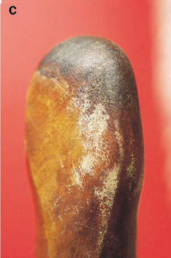 Nell’interpretazione di Stricker, le due divinità ai lati del disco solare starebbero usando i due bastoni a forma di corpo di serpente per “mescolare” il seme maschile ed il sangue mestruale femminile a mo’ di zangola per generare la nuova vita che inizia a formarsi. Come il latte in questo modo si trasforma e si separa in burro e siero, così il sangue mestruale, unito allo sperma, si “trasforma” in un feto e nel liquido amniotico.