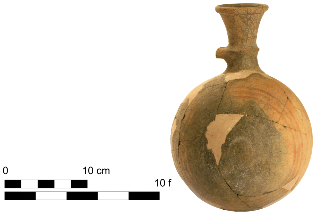Nell’interpretazione di Stricker, le due paia di breccia rappresentano l’utero; la testa tra le braccia rappresenterebbe la madre che, attraverso la placenta, nutre il feto (le teste nelle ciotole). Le braccia spingonole ciotole, suggerendo l’espulsione del feto nel momento del parto. Non è chiaro perché le figure a destra non siano definite; forse momenti diversi dello sviluppo o due “destini” diversi del nascituro? Non può essere assolutamente un caso che le figure a destra siano solo colorate mentre quelle a sinistra abbiano i tratti ben definiti.