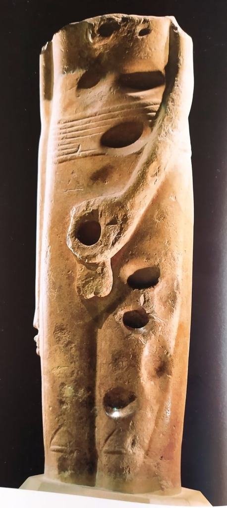 Un’ ulteriore, verosimile, ipotesi è stata avanzata riguardo l’incavo formato dall’intreccio dei colli: non sarebbe destinato al mescolamento di un cosmetico, ma alla polverizzazione dei minerali utilizzati per colorare le statue delle divinità. In realtà l’oggetto sembrerebbe troppo grande per essere considerato una paletta da trucco, e quindi è plausibile un suo impiego cultuale e celebrativo.
