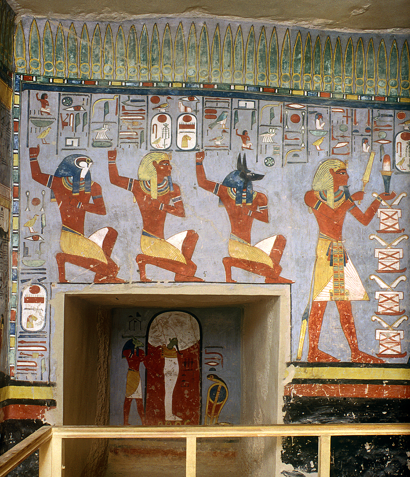 Le pareti che le circondano sono decorate da immagini della barca sacra di Ramses II.