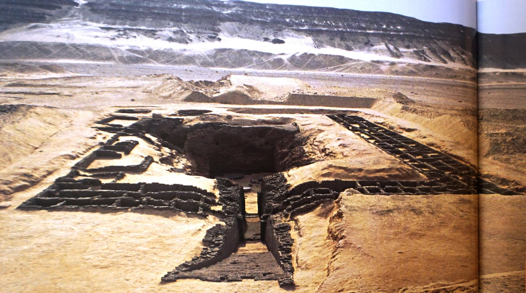 Esistono due pozzi molto profondi localizzati a circa venti metri da ciascuna delle due “case”, entrambi esplorati a suo tempo da Jean-Philippe Lauer che aveva raggiunto due locali oblunghi nei quali aveva rinvenuto null’altro che frammenti di vasellame. Ciò gli fece concludere che doveva trattarsi di depositi per le offerte. Tuttavia, le investigazioni più recentisuggeriscono che una lunga galleria, completamente ostruita, potrebbe dipartirsi dal fondo di ciascun pozzo per dirigersi fin sotto la piramide, a nord degli appartamenti attribuiti alle principesse e ai figli del re. Il carattere squisitamente funerario dei complessi che comprendono i padiglioni nord e sud, sarebbe in tal caso avvalorato (Immagine n. 19). Se l’esistenza di queste gallerie sarà confermata, resterà solo da determinare se appartengano effettivamente alle principesse Hetefernebty e Inetkaes oppure ad altri membri dell’entourage reale.