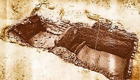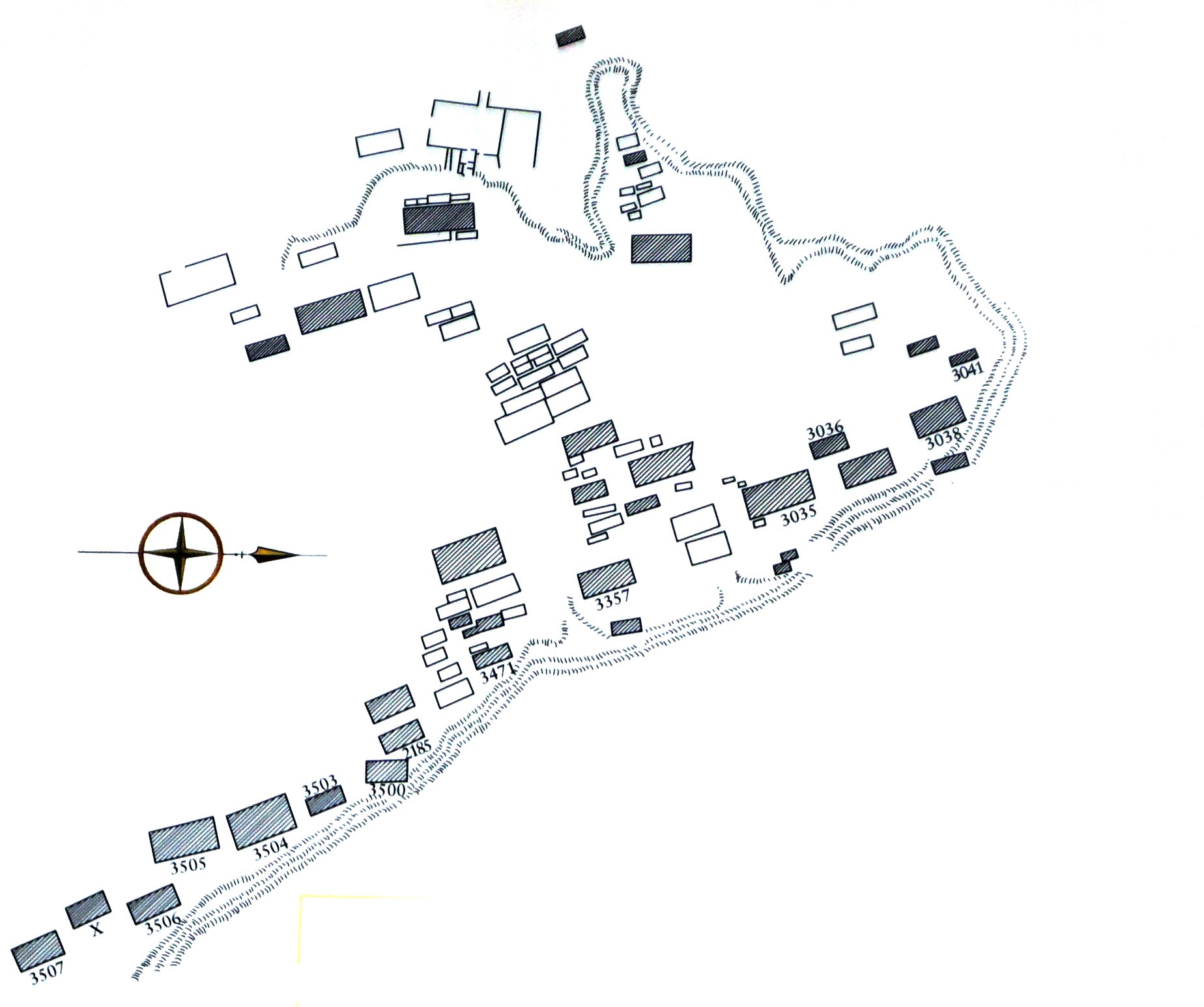 Un enorme massiccio costeggiava l’ala occidentale della cinta muraria. La sua configurazione tripartita era dominata al centro da una lunga sovrastruttura con tetto a volta, la cui forma ricorda molto da vicino quella della “tomba sud”, di cui ci occuperemo più avanti. Al di sotto si estendono diversi chilometri di tunnel sotterranei.