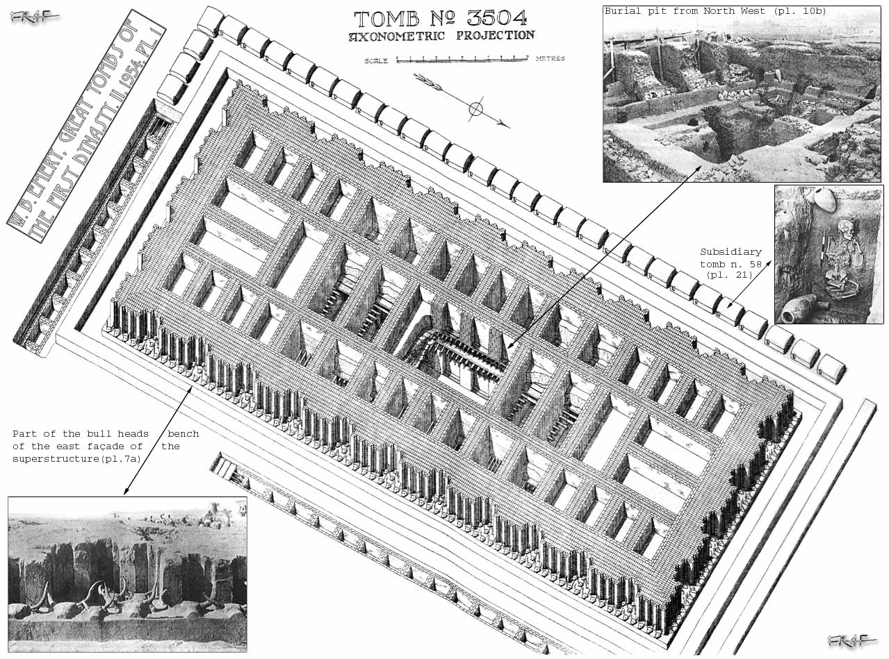 Nessuna di queste fu mai destinata ad ospitare sepolture, ma furono utilizzate come depositi, nei quali furono accumulati circa 40.000 vasi di pietra di ogni tipo, tutti risalenti alle prime due dinastie e di cui si è già parlato nella parte sesta di questo argomento.