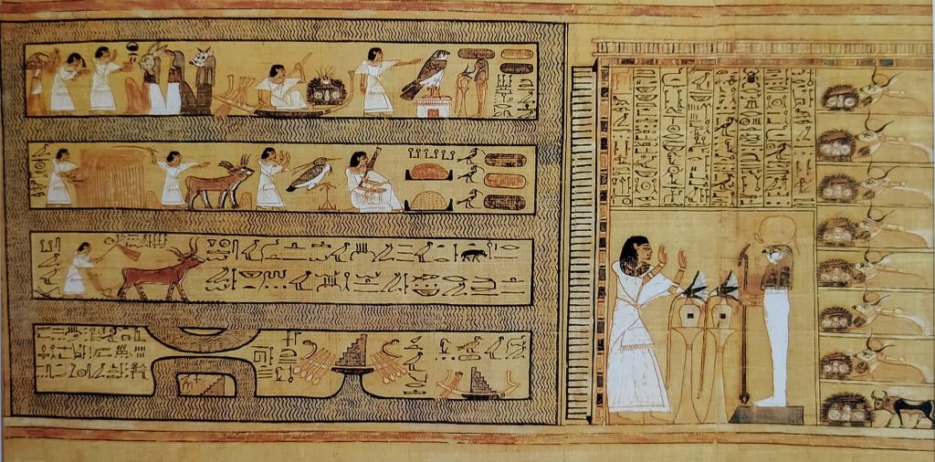 Al riguardo, osserviamo, innanzitutto, che gli egizi furono i primi ad immaginarsi un aldilà. L’idea di un “altro mondo” nel quale i defunti si trasfigurano in spiriti e condividono l’esistenza degli dei e degli immortali è assolutamente unica tra le religioni dell’antichità, come quelle della Mesopotamia, dell’antica Grecia e di Roma ed anche della teologia dell’Antico Testamento. Lo Sheol ebraico, l’Ade greco, l’ Orco Romano, il Paese Senza Ritorno dei babilonesi sono tutti “regni dei morti popolati da morti”. Solo l’Egitto ha prodotto, oltre questo universo di morti, che pure gli è noto*********, una terza sfera dell’esistenza umana: un paradiso che non è altro che il mondo divino. Pure la mitologia greca (e anche quella romana) perverrà all’identificazione di un regione di beatitudine noto come Campi Elisi (denominazione che sembra derivare direttamente dall’ egiziano antico) che ha notevole somiglianza, soprattutto ambientale, con i Campi Ialu (o Iaru), ma resta pur sempre un luogo privo della presenza della divinità. Inoltre, l’accesso non è vincolato ad un giusto comportamento sulla terra, ma può avvenire per un atto di eroismo, ad esempio, o per motivi che possono apparire del tutto estemporanei come nel caso di Menelao, per aver subito il rapimento della moglie da parte di Paride.