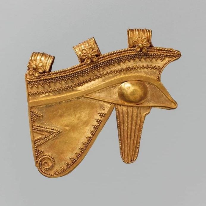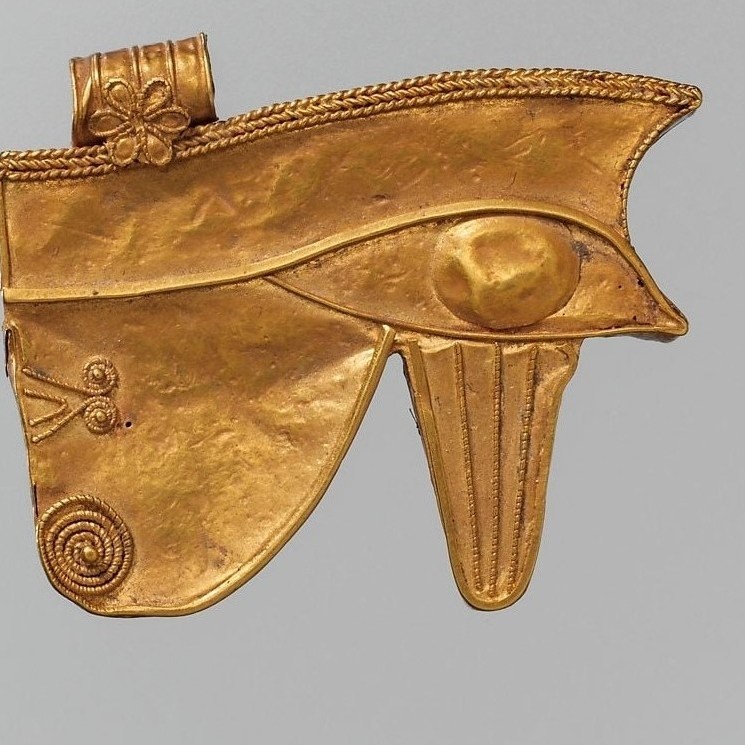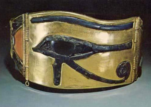 L’usurpatore Seth, che aveva ucciso il fratello Osiride, legittimo sovrano d’Egitto, nel corso dello scontro per il trono con il nipote Horus (figlio di Osiride e di Iside) gli cavò un occhio, che fu poi guarito da Thot, il quale recuperò i sei pezzi nei quali esso era stato frantumato e lo ricostituì; l’occhio risanato divenne il simbolo di rigenerazione e del trionfo dell’ordine sul caos e fu quindi associato all’idea di Maat con funzione apotropaica.