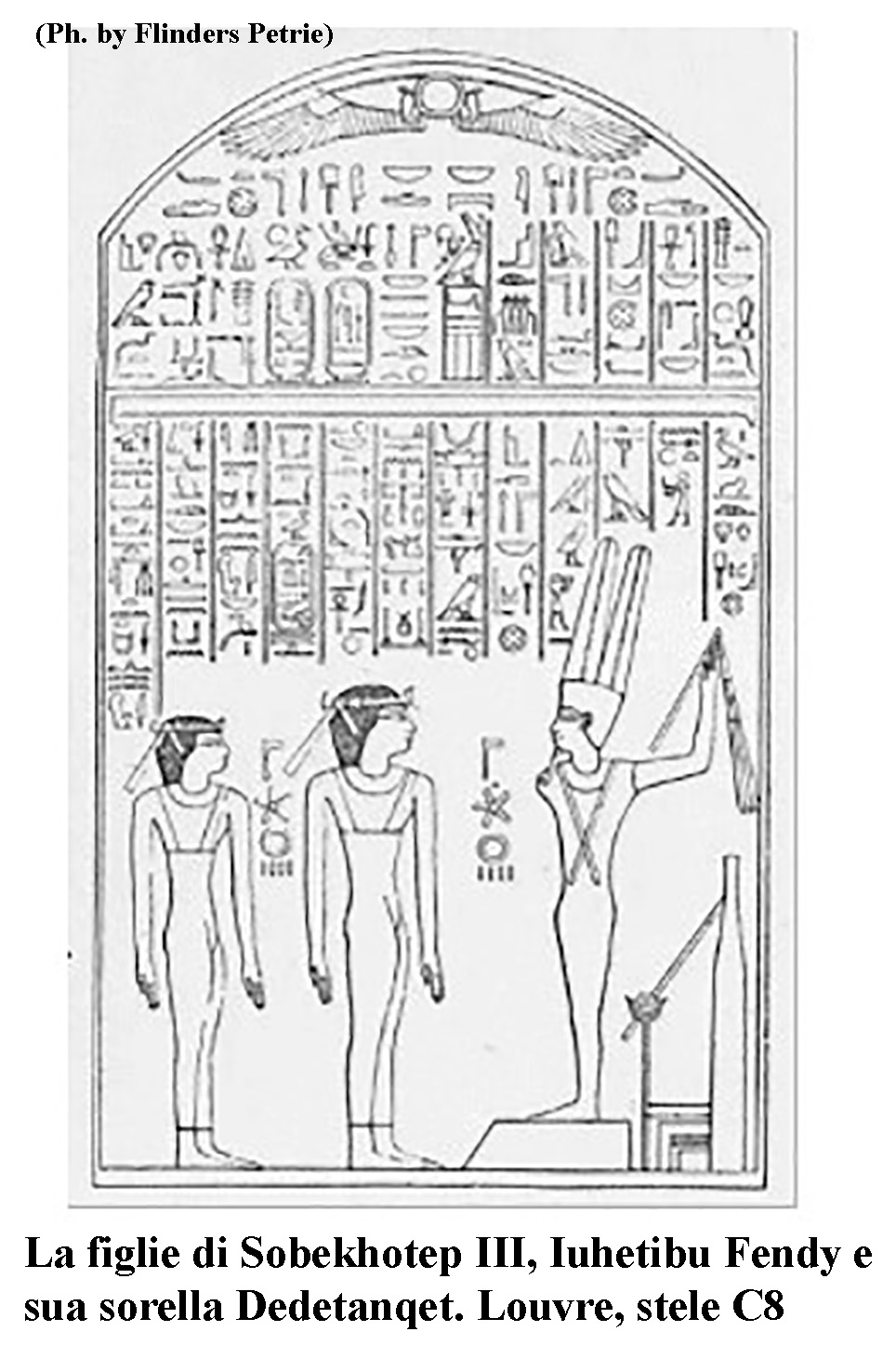 Su di una stele proveniente da Koptos, conservata al Museo del Louvre, sono rappresentate le due figlie, Dedetanqet e Iuhetibu Fendy, il nome di quest’ultima è scritto in un cartiglio, è la seconda volta nella storia egiziana che la figlia di un re riceve questo onore (fig. 11).