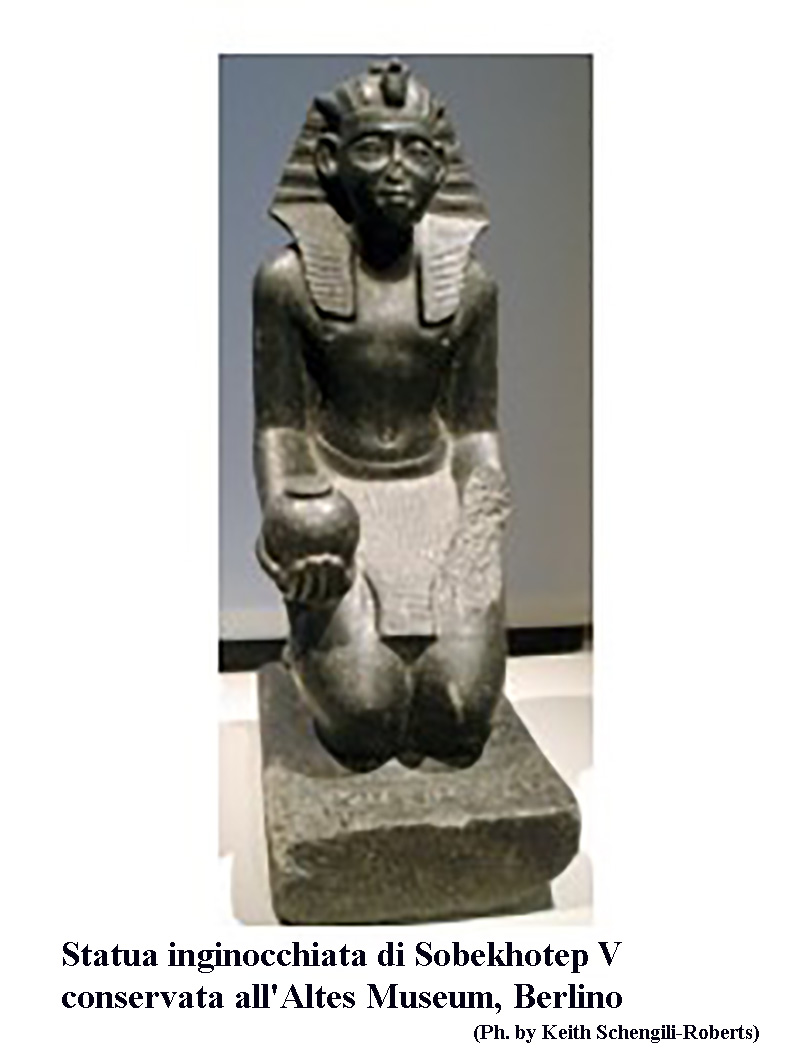 Anche in questo caso dobbiamo tralasciare il Canone Reale come tutte le altre liste reali perché questo sovrano non è inserito in alcuna di esse. Sappiamo di lui grazie al ritrovamento del tutto fortuito di una statua che lo rappresenta. Si, ma sapete dove? A Benevento, in Italia, dove l’imperatore romano Domiziano fece costruire un tempio in onore della dea Iside sul finire del I secolo d.C. La statua venne alla luce nel 1957 e con tutta probabilità doveva far parte degli arredi del tempio. La statua, dedicata ad Amon-Ra, in origine doveva trovarsi nel tempio di Amon a Karnak, oggi è esposta al Museo del Sannio in Italia. Sulla statua sono visibili i cartigli, simbolo di regalità, con i nomi del sovrano.