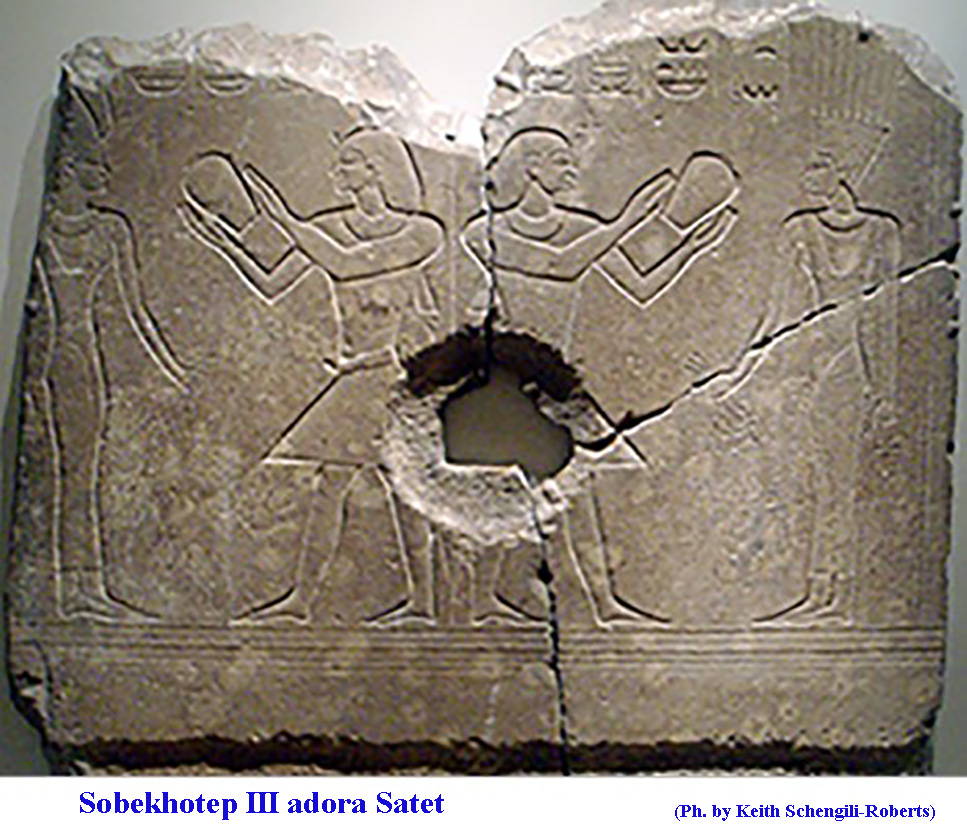 Sobekhotep III era un adoratore di Satet, dea protettrice delle acque del Nilo, è rappresentato in una stele (fig. 9), il foro nella stele è stato praticato molto tempo dopo quando questa è stata utilizzata come mola, oggi si trova al Brooklin Museum.
