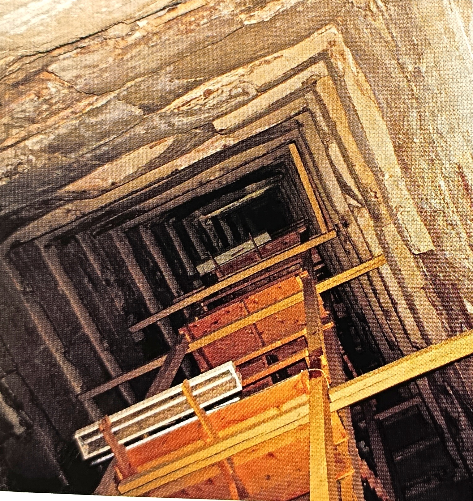 Negli anni ’40, durante lo smantellamento di un massiccio blocco di pietra che riempiva interamente la camera funeraria fino ad un’altezza di 6 metri, fu rinvenuto un possente puntellamento in legno di cedro del Libano inserito nello spazio delimitato dalle pareti. Qui, fu scoperto il nome di Snefru scritto con inchiostro rosso. Di questa struttura ne rimane oggi solo circa un terzo (Immagine n. 29).
