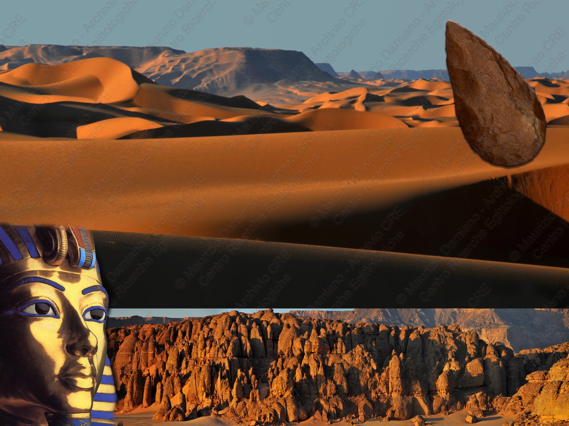 Ma nei tempi remoti in cui delle piramidi non poteva esistere neppure il più pallido pensiero, la cultura umana non si sviluppava vicino al grande fiume, bensì nel cuore del Sahara egiziano, dominato da aree che oggi chiamiamo Grande Mare di Sabbia (Great Sand Sea, GSS), Ghilf Kebir, Gebel Awenat…qui si trovano le radici della cultura, dell’arte e del pensiero egizio.